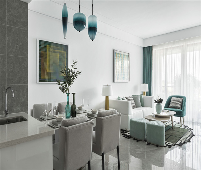 海边的地理位置,赋予棕榈及水波,在床沿蔓延开来,画间的徜徉给常规的矩形慢慢演变划开,可以是一个床边的会谈,或是静默的下午自己端着一杯咖啡,随意的翻看着杂志,给自己心灵得到放松,总是自由又轻松的模样也是你最迷人的本真。
