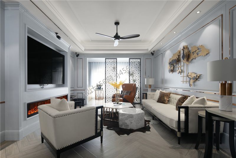 详情江山里178平米四居美式轻奢风格客厅装修设计效果图