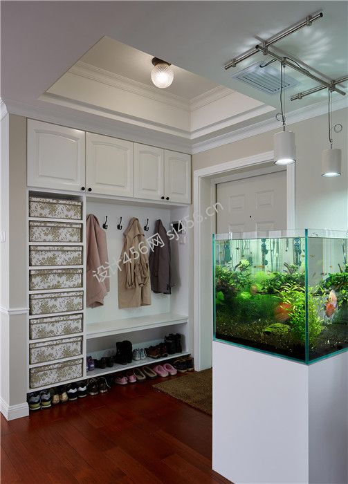设计理念: 进门就能看到的金鱼缸,既满足了余小姐的梦想,也可以作为空间分隔的良好道具, 柜子的设置也很巧妙,藏在鱼缸的下方,不显山露水却又精巧实用。 进门就能看到的金鱼缸,既满足了余小姐的梦想,也可以作为空间分隔的良好道具, 柜子的设置也很巧妙,藏在鱼缸的下方,不显山露水却又精巧实用。