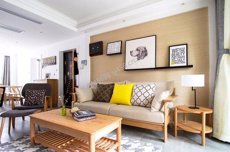 设计理念: 没有大红大绿的装饰,喜欢简约、热爱生活的两人。选择了日式风格的装修,电视背景墙与沙发背景墙,都采用了不同花色的护墙板,仿佛嗅到了大自然的芳香!在沙发的软装上下了功夫,素色的布艺沙发,放上两三个相互搭配的抱枕,增强了不少空间活力哦! 没有大红大绿的装饰,喜欢简约、热爱生活的两人。选择了日式风格的装修,电视背景墙与沙发背景墙,都采用了不同花色的护墙板,仿佛嗅到了大自然的芳香!在沙发的软装上下了功夫,素色的布艺沙发,放上两三个相互搭配的抱枕,增强了不少空间活力哦!
