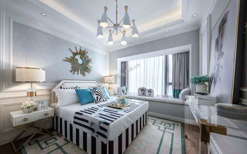 148平米三居室混搭风格卧室窗帘装修设计效果图