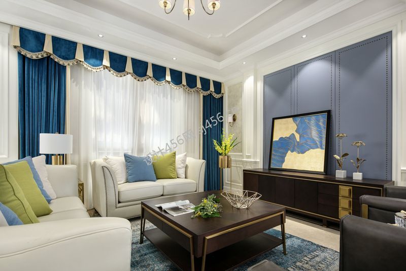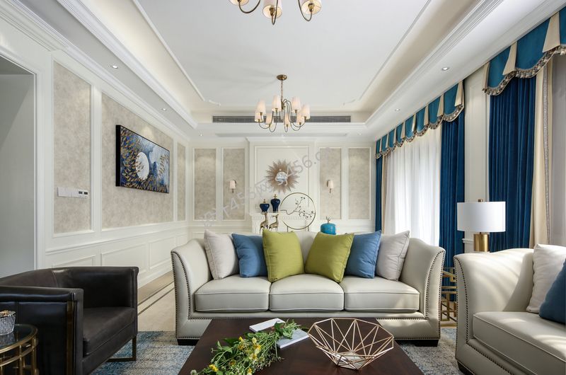 详情富地中心316平米美式家居风格四居室客厅装修设计效果图