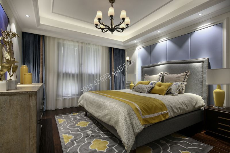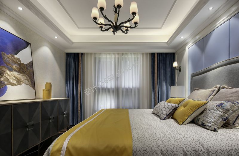 富地中心316平米美式家居风格四居室卧室背景墙装修设计效果图
