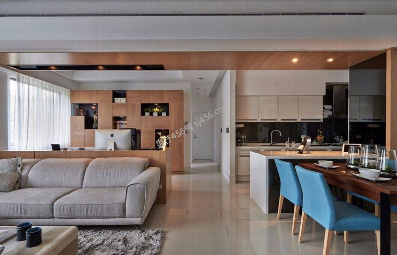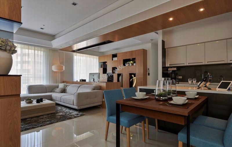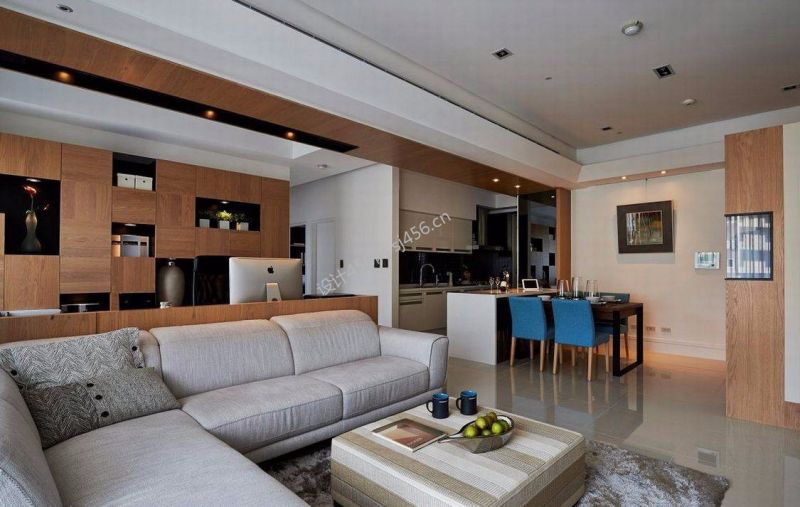 三居139平现代简约风格客厅餐厅一体装修图片