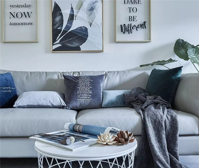 沙发、抱枕及装饰画的配色,都选择自然色,给人一种很纯净的感觉,多但不杂,看着很舒服。