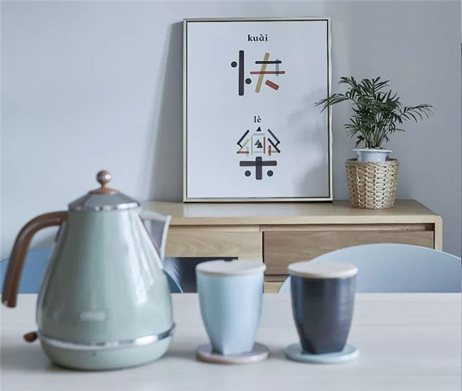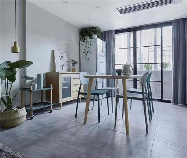 餐厅也很清新自然,木色的餐桌餐柜与绿色植物,配合阳台带来的光线,让人享受沐浴在自然光下就餐的愉悦。