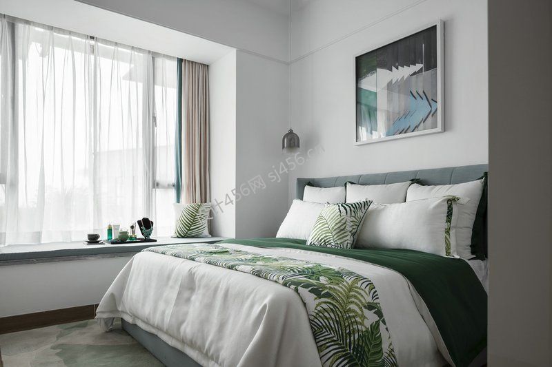 石城财富广场150平精致现代风格四居室卧室背景墙装修设计效果图