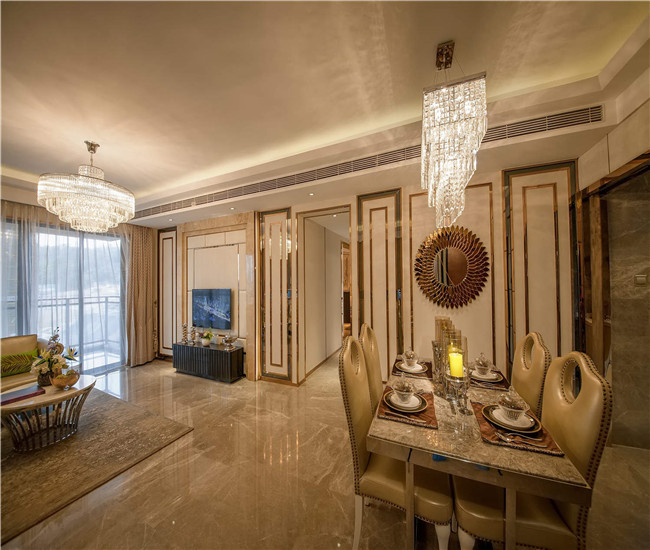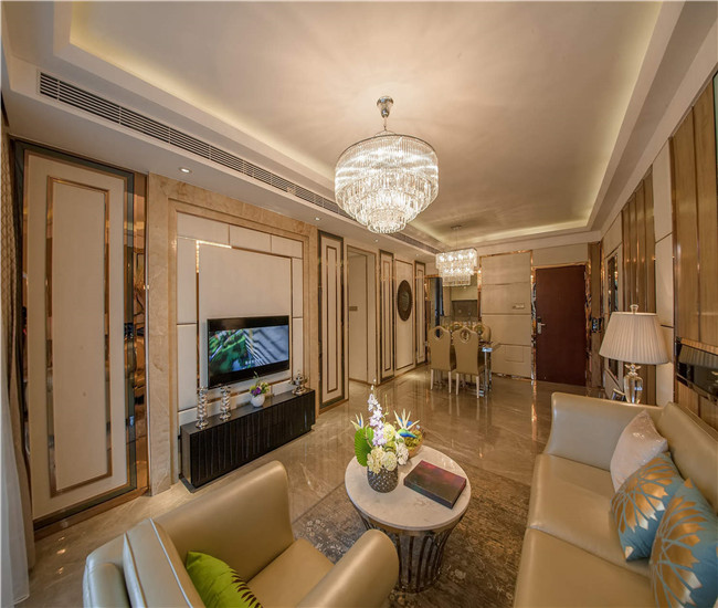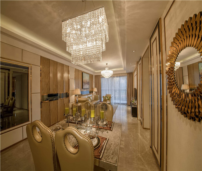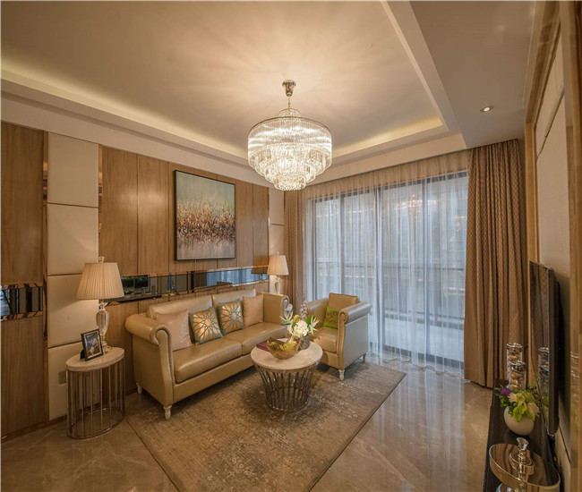 客厅在在水晶吊灯的辉映下更显奢华,经典的搭配不禁让人怦然心动。