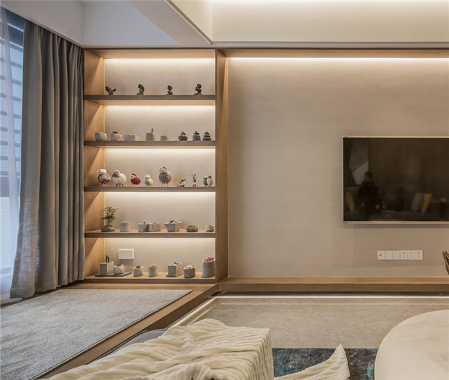 做成暗门的主卧入口,悄无声息地隐于客厅背景墙中。它在等你打开这扇门,探索出一个新新世界。