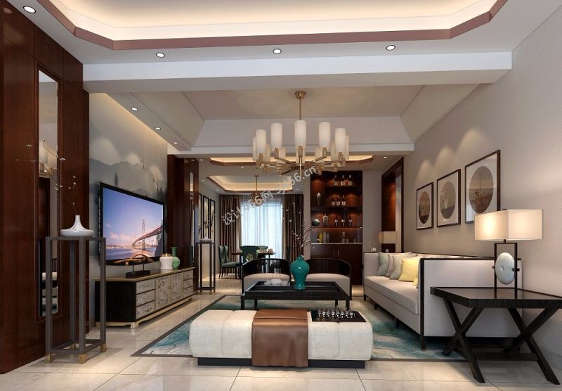 新都汇132平米四居室新中式风格客厅装修设计效果图