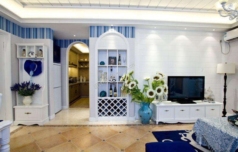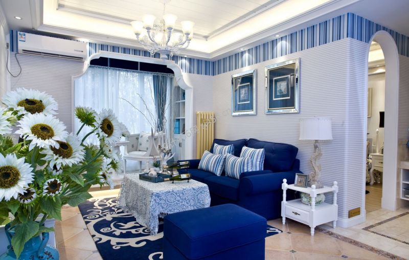 设计理念: 从客厅的全景照可以看出,客厅主要使用了深蓝、浅蓝和白色,也是地中海风格的标志性颜色。 从客厅的全景照可以看出,客厅主要使用了深蓝、浅蓝和白色,也是地中海风格的标志性颜色。