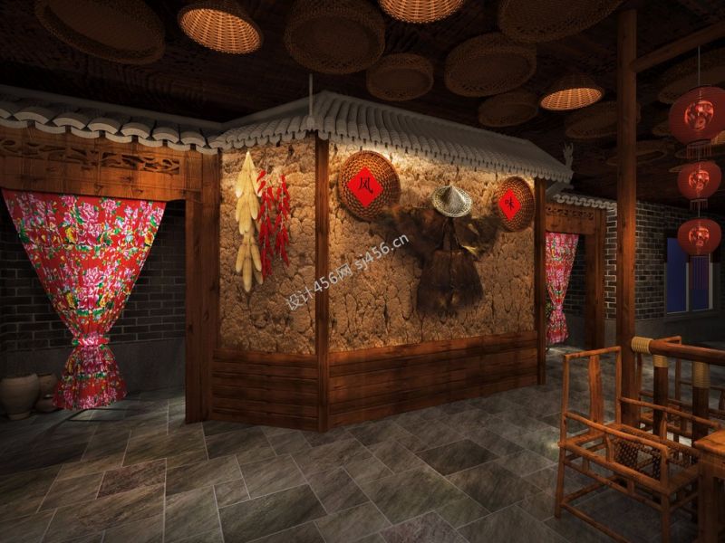 1250平中式风格餐馆室内过道走廊装修设计效果图