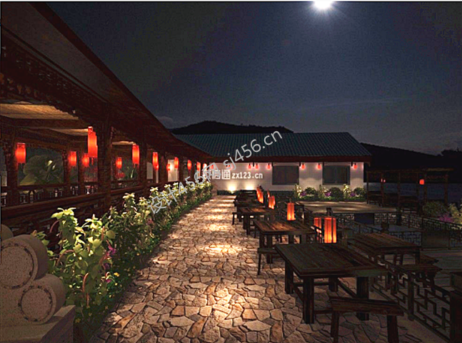 详情1250平中式风格餐馆外观店面装修设计效果图