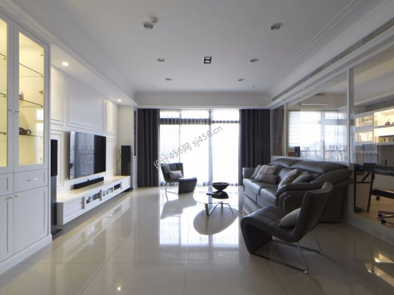 设计理念: 赣州净白轻奢 176平现代风格大气四居,客厅设计开阔大气,以黑白对比色呈现出干净利落的空间感。 赣州净白轻奢 176平现代风格大气四居,客厅设计开阔大气,以黑白对比色呈现出干净利落的空间感。