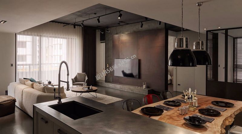 设计理念: 赣州个性独具 165平大气硬朗工业风三居,以深色铺陈的天花板和外露线管,以及地面上粗犷的涂抹痕迹,让空间散发出独特的个性风采。 赣州个性独具 165平大气硬朗工业风三居,以深色铺陈的天花板和外露线管,以及地面上粗犷的涂抹痕迹,让空间散发出独特的个性风采。