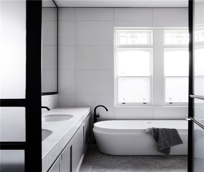 卫生间的空间虽小,浴缸的放置却不显得拥挤,相反,既能舒服泡澡,还能保证干湿分离。这是实用主义与艺术主义的完美结合。