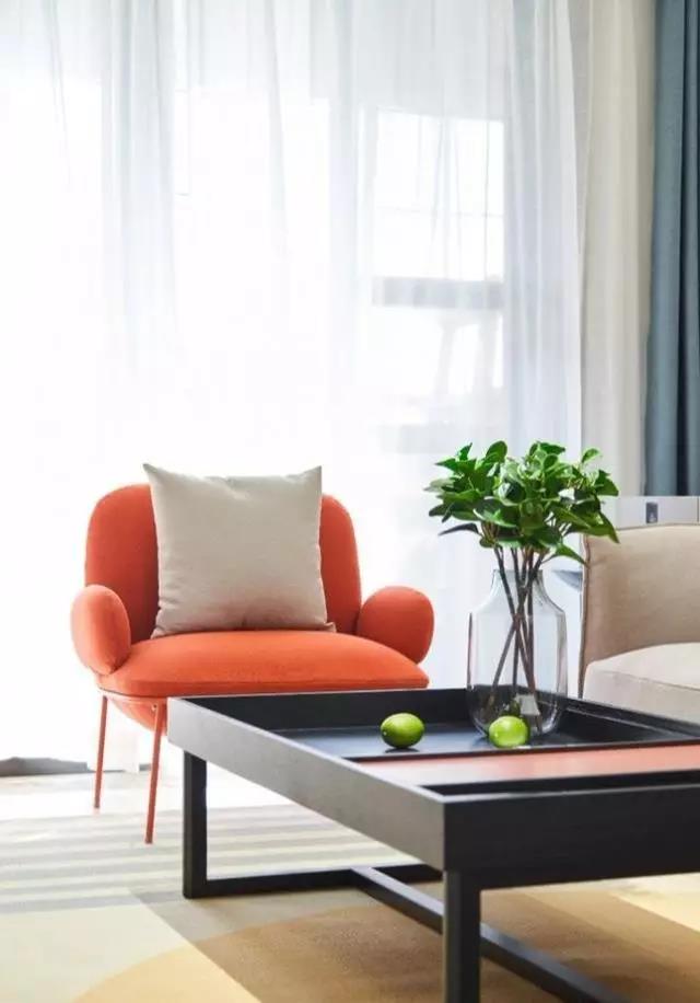红色的单椅沙发活跃了整个空间,造作的,很容易购买,简单又活泼。