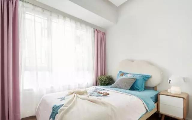 女儿房放置的是1.2米的床,床和床垫是在线上购买的呢,云朵的床和小熊的灯是女儿的最爱,窗帘用的是粉灰色的,这个切记一定不能太粉,不然很容易感觉过于艳丽哦。