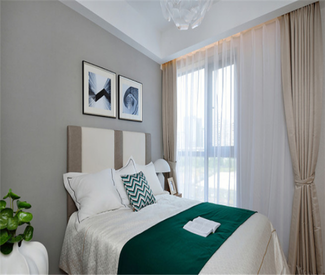 次卧在装修布置上以简洁清爽为主,好梦入眠。