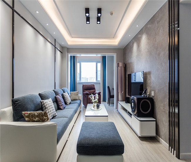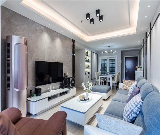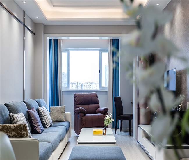 客厅采用的现代简约风格,整体设计比较中规中矩,其设计亮点在于合理的利用了阳台空间。
