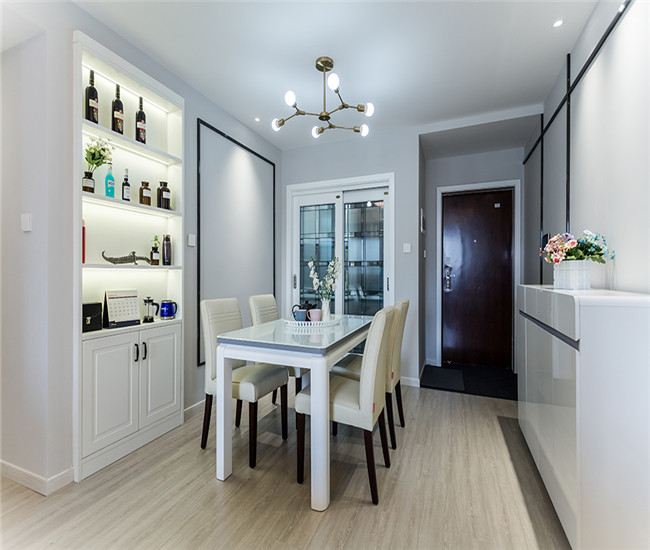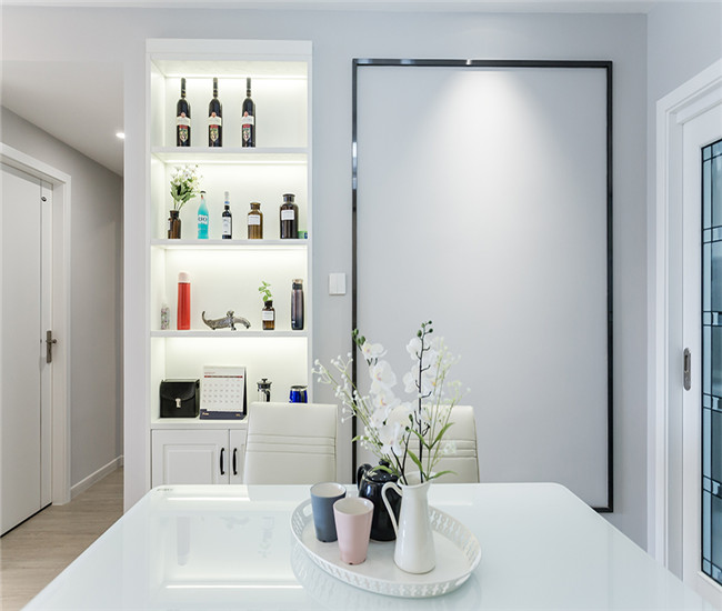 餐厅是大家经常用的地方,适用我们选用的色调也是白色,这样主要为了让我们看着不会有视觉疲劳。