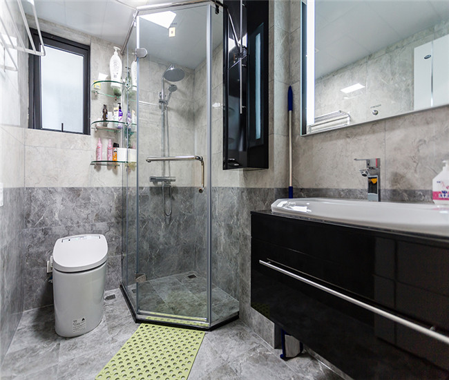 卫生间用的是灰色的色调,切合着现代简约风格