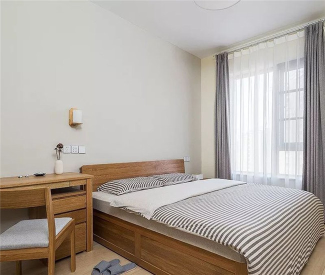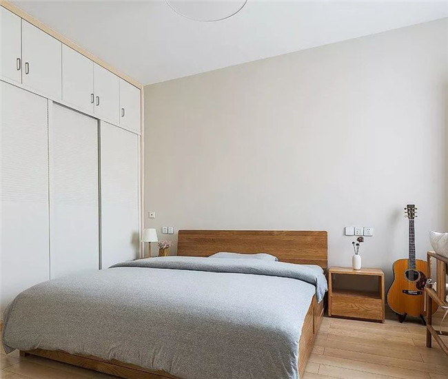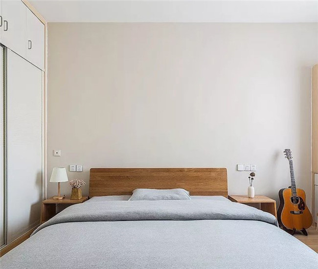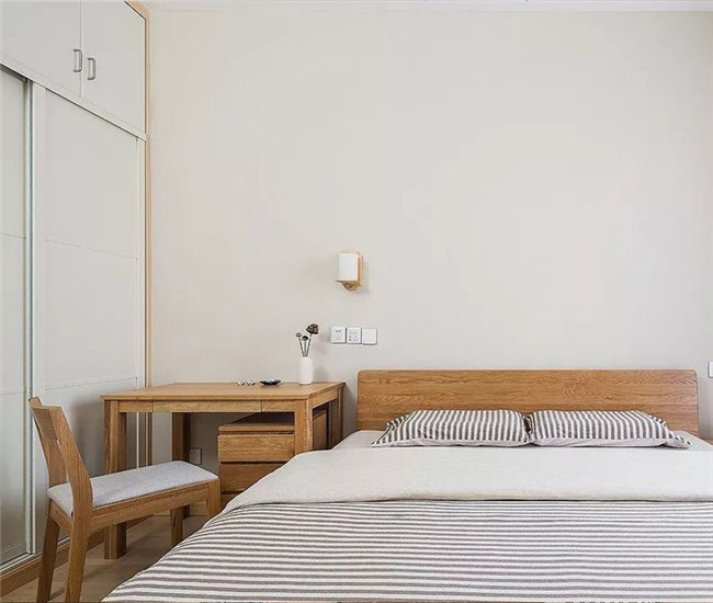 自然宁静的卧室环境,最能让人心身放松。通常在选择原木色家装的时候,我们会用大白来互衬,因为白色简洁明亮,与自然木色清新呼映,既复古又现代。