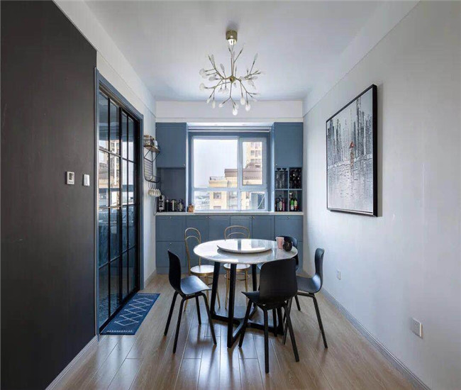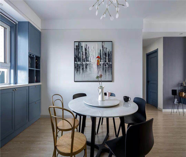 最棒的是餐厅也有专属的窗户,采光特别的赞。沿着窗台还打造出蓝色收纳柜,可实用了。