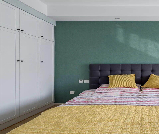 侧墙被利用起来打造了顶天立地的大衣柜,里面挂衣区、叠放区、抽屉都设计得非常合理,可以让你的生活变得更加井然有序。