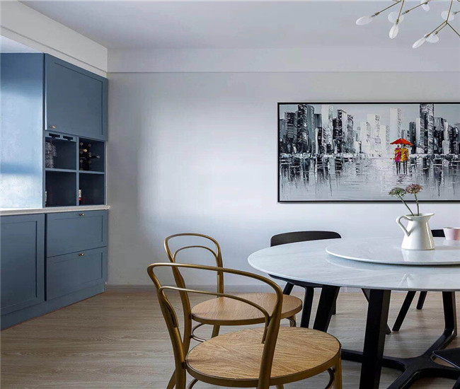 背景墙上搭配了一幅雨中城市风景画,意境好浪漫。