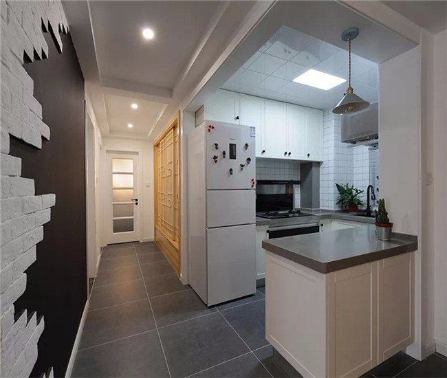 考虑到不怎么在家做饭,因此厨房就装成了开放式的;在走廊的连贯下,整个空间更是显得自然大方。
