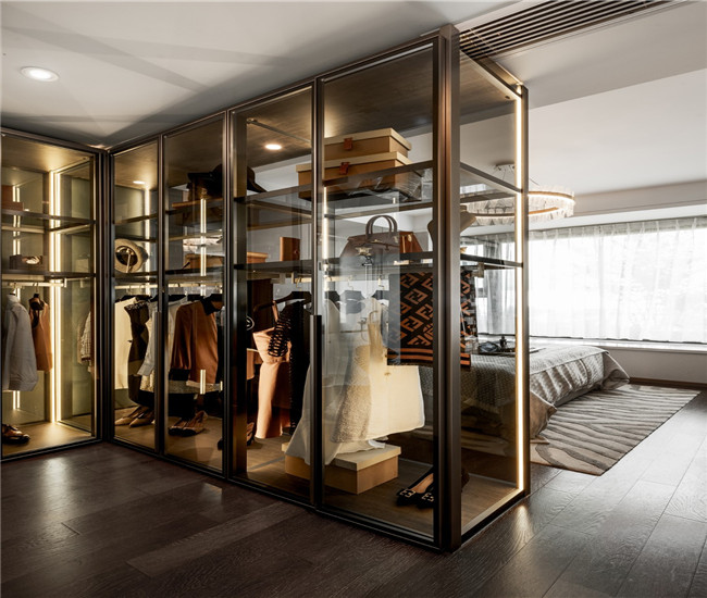 设计师利用它自然间隔出时尚高贵的衣帽间,将艺术与实用相结合,营造出高端的生活空间。