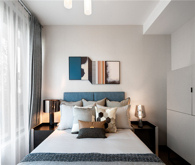 次卧陈设较为简约,但是依然从配色上下足了功夫