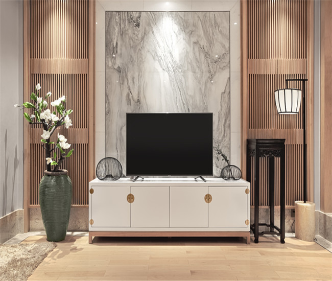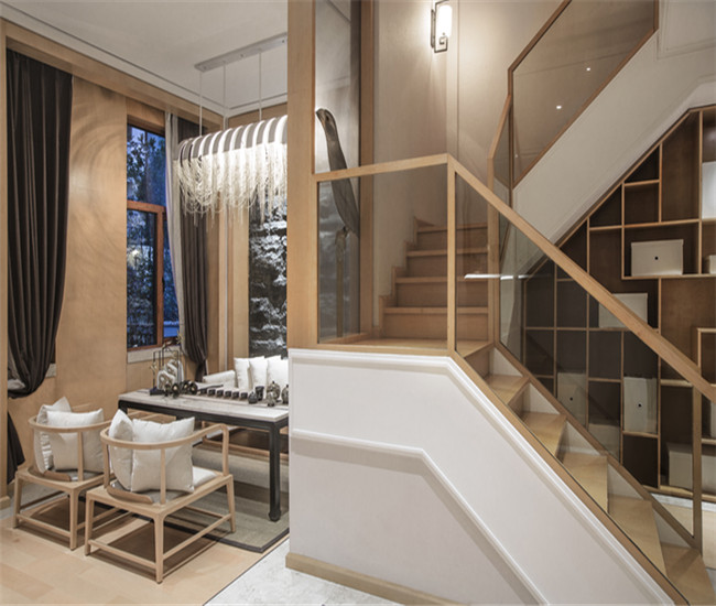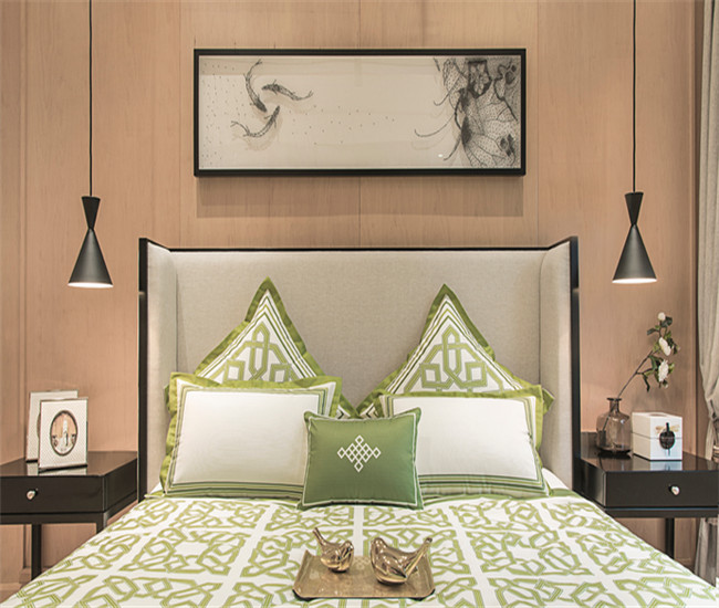 【设计说明】本案例是新力.帝泊湾119平中式风格,设计师为了使得空间更敞亮,在强化功能的基础上采用材质与色彩的独到设计,充分利用色彩的发射,大量运用了白色和浅黄原木色;同时大量运用木质这种天然材质,使得整个屋子都有种贴近自然的感觉