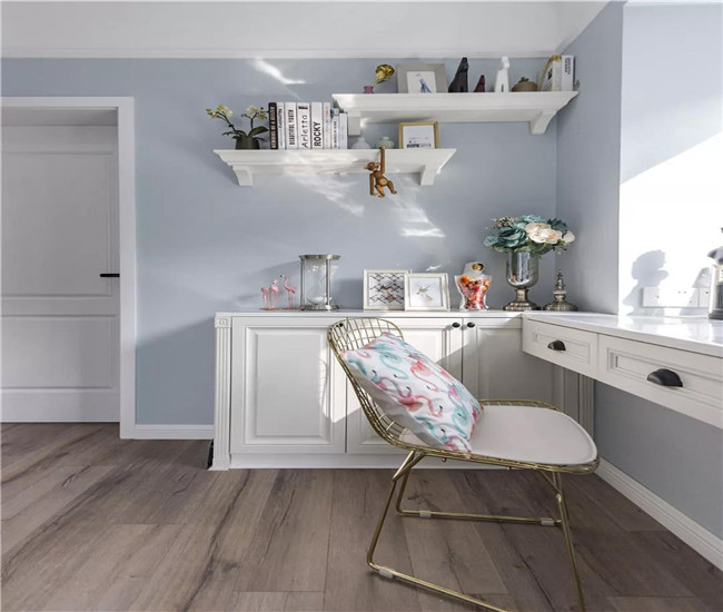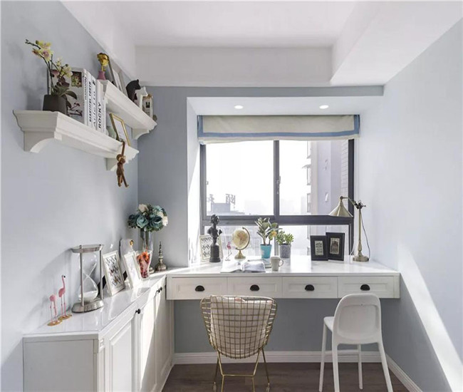 书房延续蓝白调的风格,与罗马帘相互呼应。