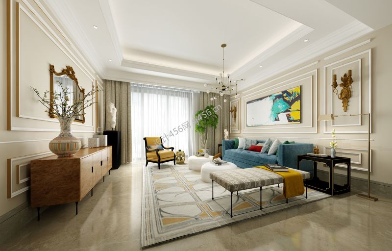 东城首府欧式风格客厅家具沙发摆放设计图赏析
