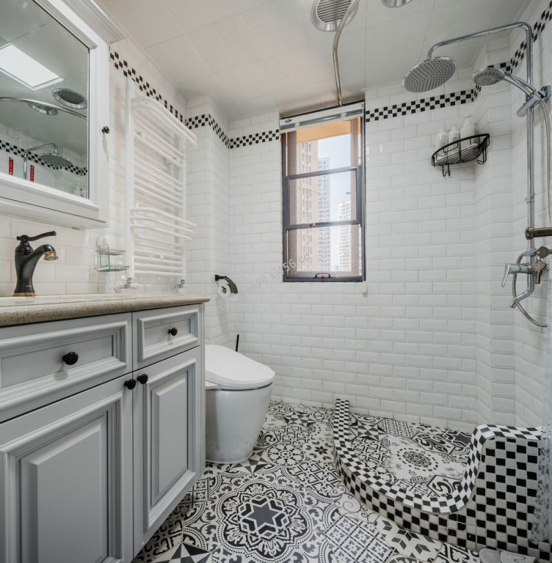 美式轻奢风160平卫生间地板图片