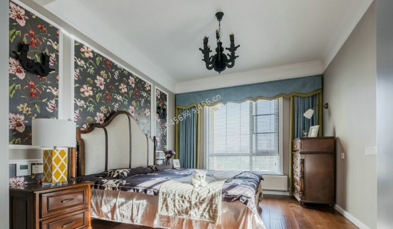 美式轻奢风160平卧室背景墙图片