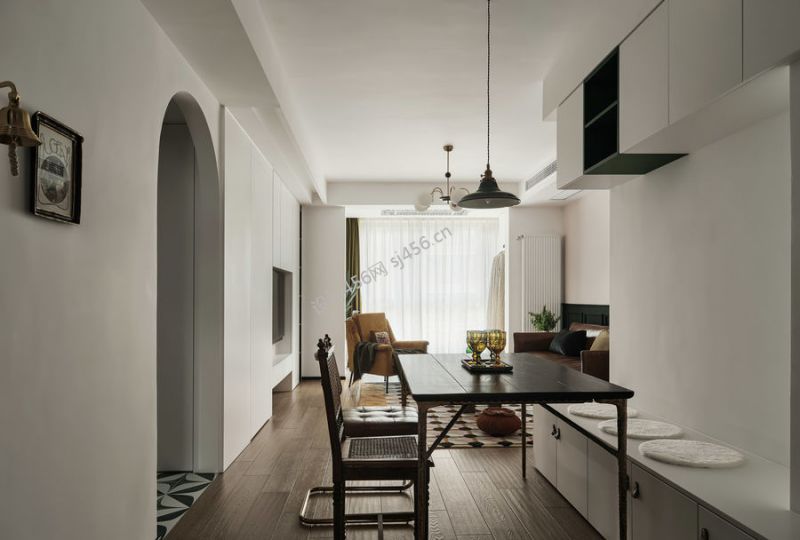 85平复古风饭厅装修效果图
