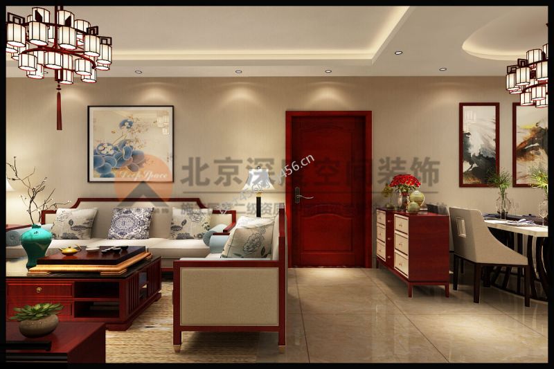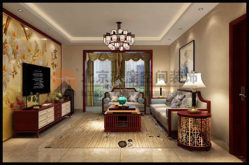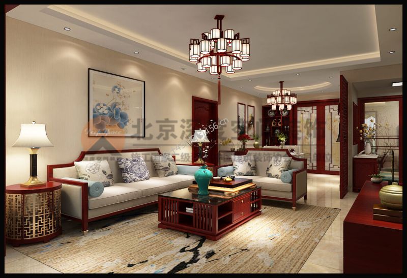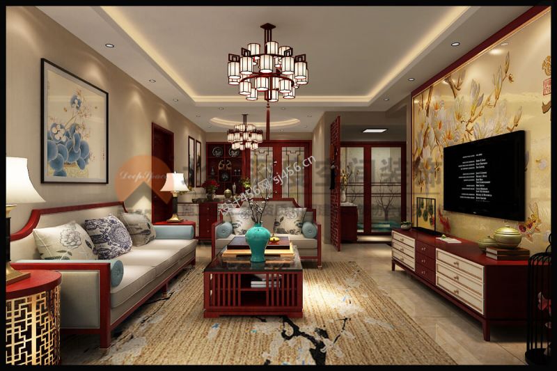详情兴汇城134平新中式风格客厅家具装修摆放效果图