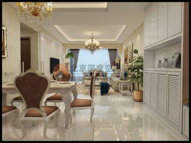 彰泰春天三居119平欧式风格餐厅背景墙装修效果图
