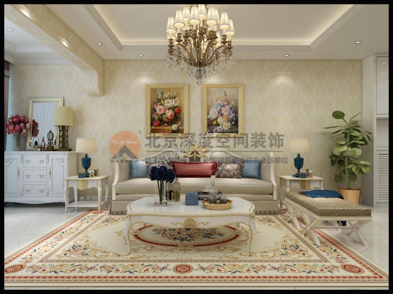 详情彰泰春天三居室119平简约欧式风格客厅装修效果图