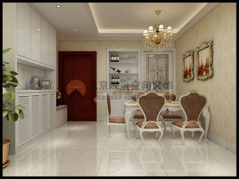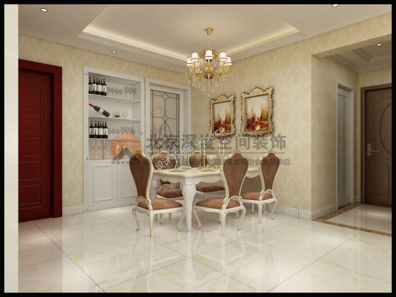 彰泰春天119平简约欧式风格餐厅酒柜设计装修效果图