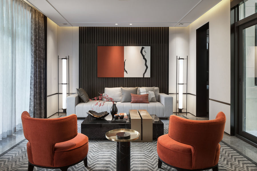 分隔区域,就是非实物隔断存在的意义。它们常常被用于较为开阔的房间,进行不同区域的分辨——比如客厅餐厅一体设计、客厅阳台一体设计、开放式厨房设计等。