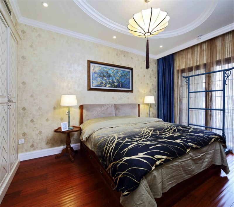 123平米混搭风格三室两厅卧室床头装修效果图