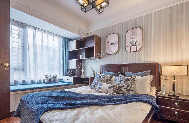 新中式风格三居室卧室床头柜设计效果图