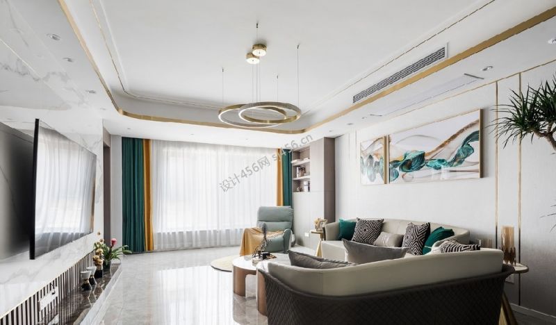 轻奢风格143平米四居室客厅沙发背景墙装修效果图
