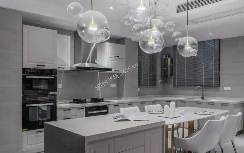 北欧风格三居室餐厅厨房一体设计效果图