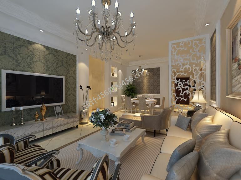 山水黔城121㎡欧式风格客厅装修效果图