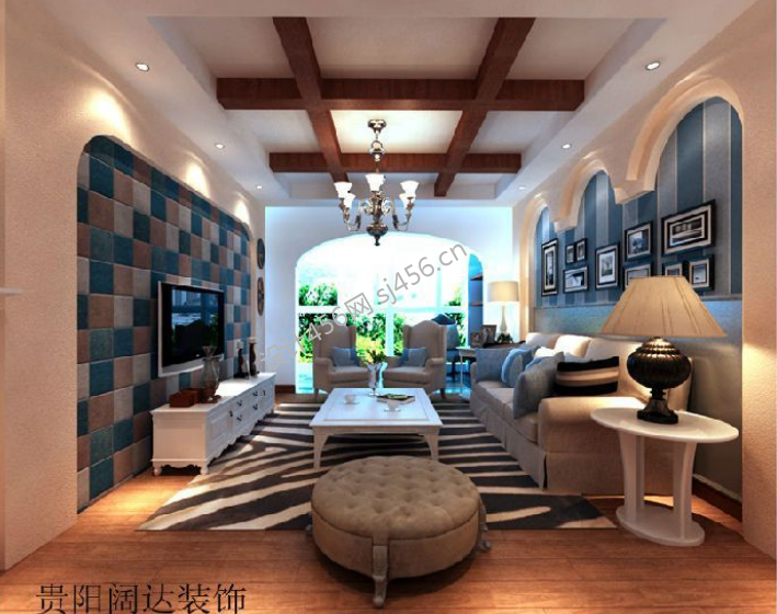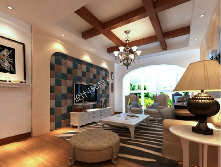 保利云山120㎡地中海风格电视墙装修案例